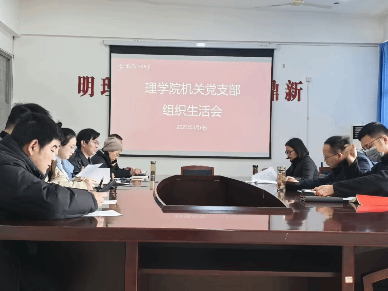 (王祖政 李嘉成)3月6日,理学院机关党支部在教二楼22614会议室召开支部组织生活会和民主评议党员,以“强化党性锤炼、筑牢思想防线”为主线,通过专题党课、警示教育、批评与自我批评等环节,推动全体党员在政治体检中实现自我净化、自我提升。党支部书记宋华丽主持会议。