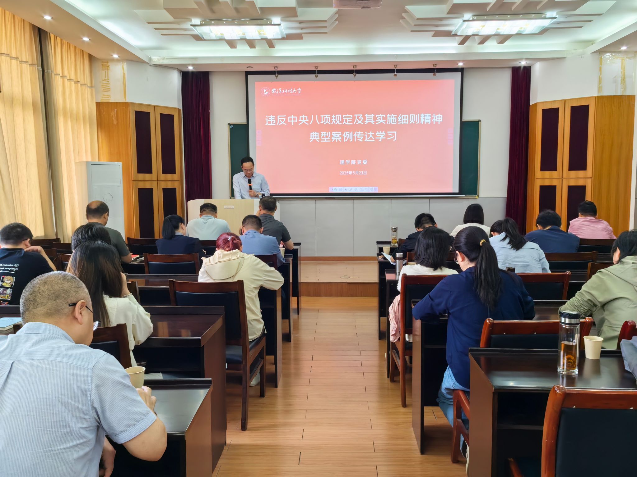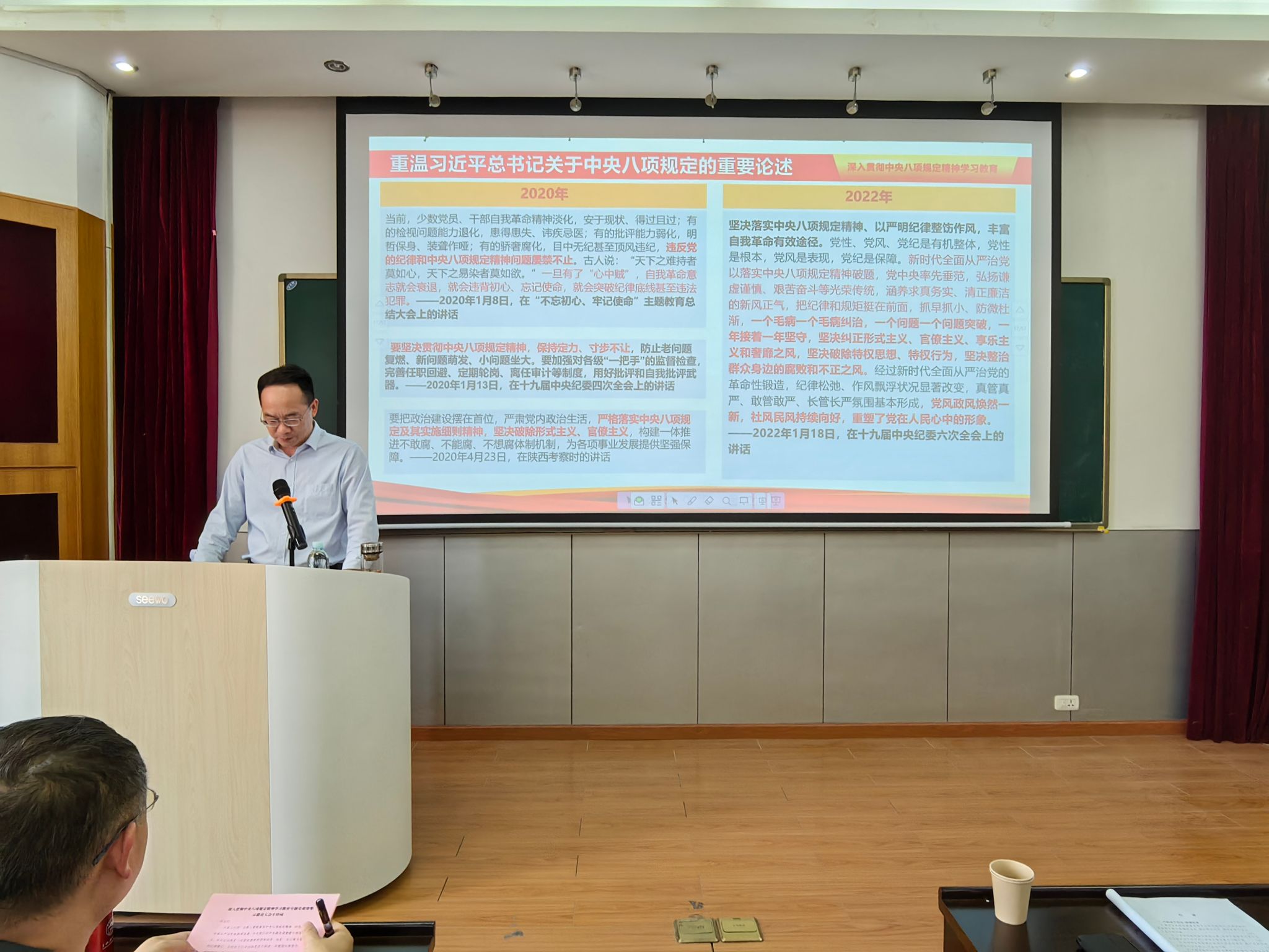 为深入贯彻中央八项规定精神学习教育,纵深推进全面从严治党,理学院于5月23日下午在22515学术报告厅召开深入贯彻中央八项规定精神学习教育专题党课暨警示教育大会,学院领导班子成员、系部主任、副主任、各党支部书记、支委会成员及党员代表参加,学院党委书记王文涛出席会议并讲话,学院院长丁义明主持会议。