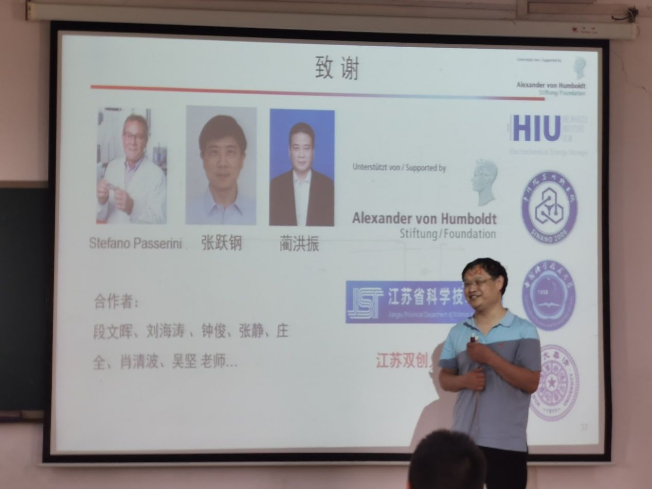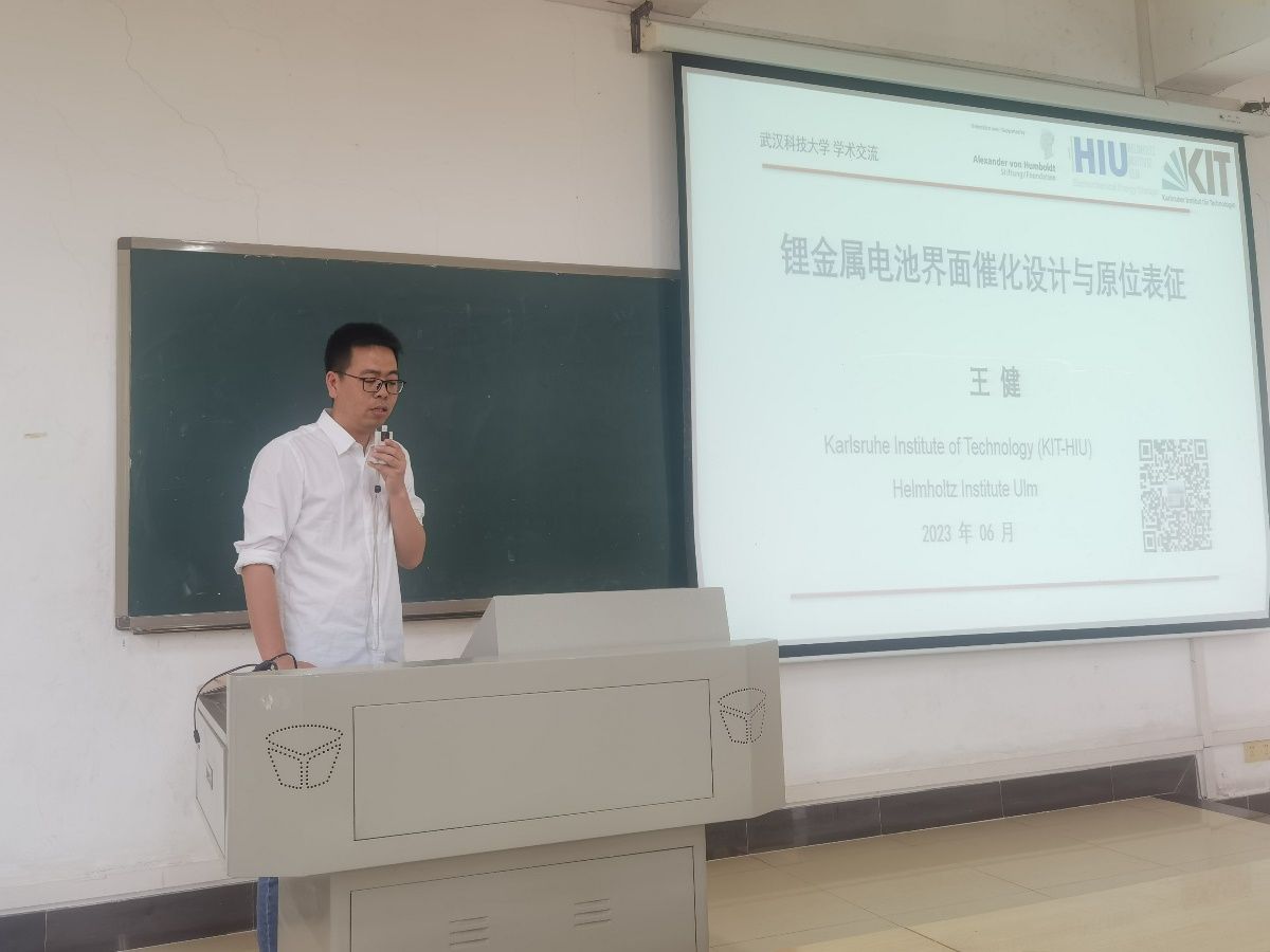 通讯员朱思聪6月12日上午, “洪堡学者”获得者、德国Karlsruhe Institute of Technology、Helmholtz Institute Ulm电化学研究所研究员王健博士应邀理学院作学术报告,报告题目为“高比能锂金属电池的催化设计与原位机制表征”报告会由应用物理系光电信息科学与工程专业教研室主任朱思聪主持。理学院院长丁义明,理学院副院长王玉华,创新创业学院副院长汪汝武等几十位师生参加了此次报告会