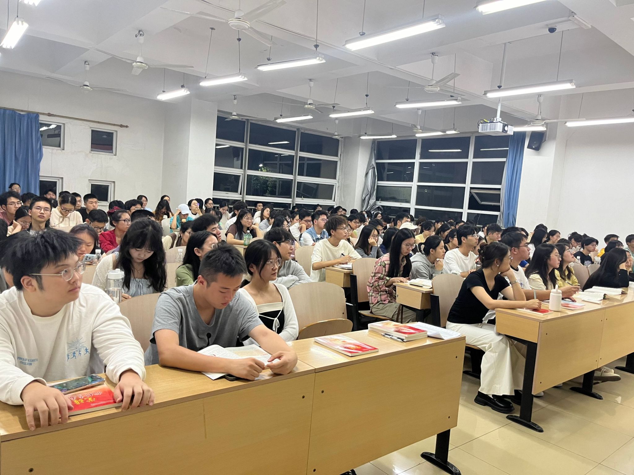晚上6点20分,开班典礼正式开始,全体学生起立奏唱国歌。杨德明向全体同学表示欢迎并致辞。他向各位学员介绍了本次培训课的课程安排,并重点强调了培训课程的纪律问题,要求学生们以严肃的心态对待党课,树立良好的积极分子形象,课程中禁止玩手机、交头接耳等一系列扰乱课堂秩序的行为。随后培训课程正式开始,杨德明为大家带来培训第一节课,他从多个角度向学生们详细介绍了大学生入党须知、入党流程以及入党文书的写法,最后,他为大家播放了专题节目《榜样七》,在英雄医生路生梅的感人故事中结束了本节培训课程。