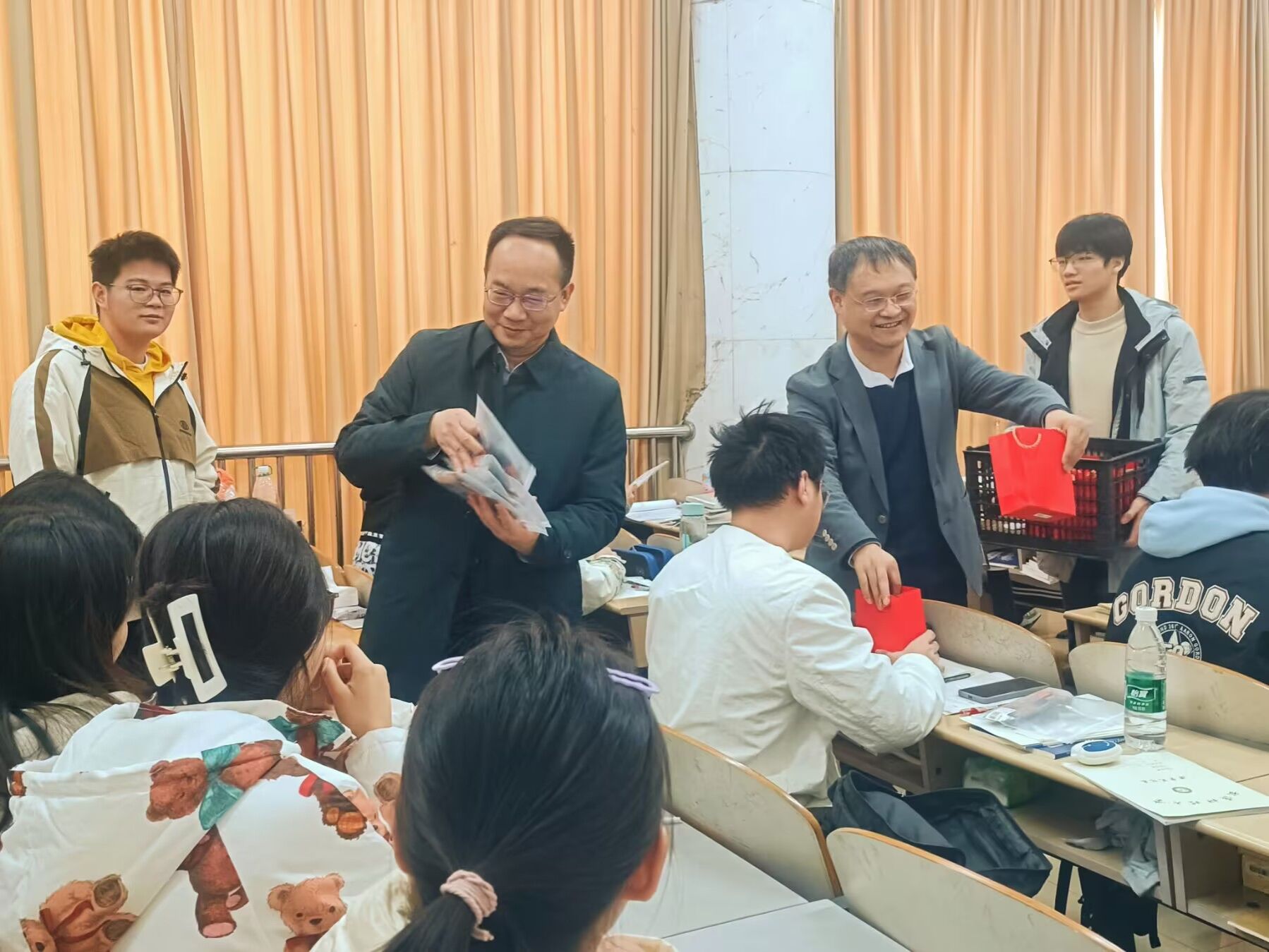 武科大网讯(通讯员林小桐 张迪)为缓解2021级学生考研和考公的压力,并坚定学生信念和信心,11月22日,pg电子官网于教22300考研自习室开展了“心想柿橙”冬日温暖企划活动。pg电子官网党委书记王文涛、院长丁义明、副院长张传洲以及2021级辅导员毕浩洋出席为学生们送温暖。