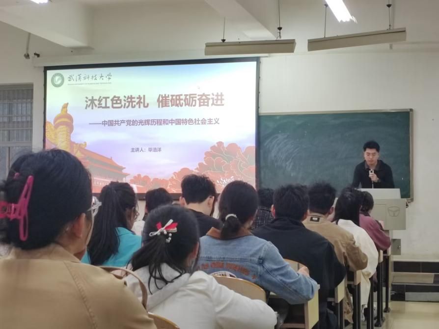 开班仪式结束后,培训课程正式开始,毕浩洋为大家带来以“沐红色洗礼,催砥砺奋进”为主题的课程,他将课程分为了四个板块,从中国共产党的诞生出发,介绍了新中国成立后的艰难探索之路,随后他又借电视剧《觉醒年代》里的“南陈北李”展开了对“中国共产党怎么建立起来的”的介绍。课程中,他不断强调“中共一大建立组织,二大确定纲领,三大国共合作。”帮助各位入党积极分子对这段历史留下深刻的印象。