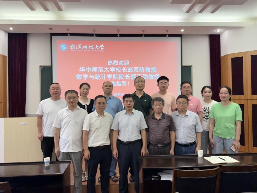 受学院邀请,华中师范大学校长彭双阶教授、数学与统计学学院院长郭玉劲教授于6月19日下午3:00来院作学术报告。本次报告会由湖北名师李德宜教授主持,院长丁义明教授、武科大学报编辑部主任冯育强教授以及部分数学教师与研究生参加了此次报告会。