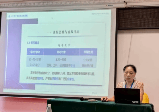 本次会议聚焦人工智能与大学数学课程深度融合主题,通过专家报告、专题研讨等形式,深入探讨了AI时代数学课程改革路径。蒋君受邀在分组报告环节作优秀案例分享,详细介绍了pg电子官网《高等数学》课程思政建设成果。其报告通过生动的教学案例,展示了知识传授与价值引领的有机统一,获得与会专家高度评价。
