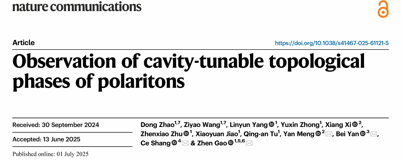 论文链接:Observation of cavity-tunable topological phases of polaritons | Nature Communications