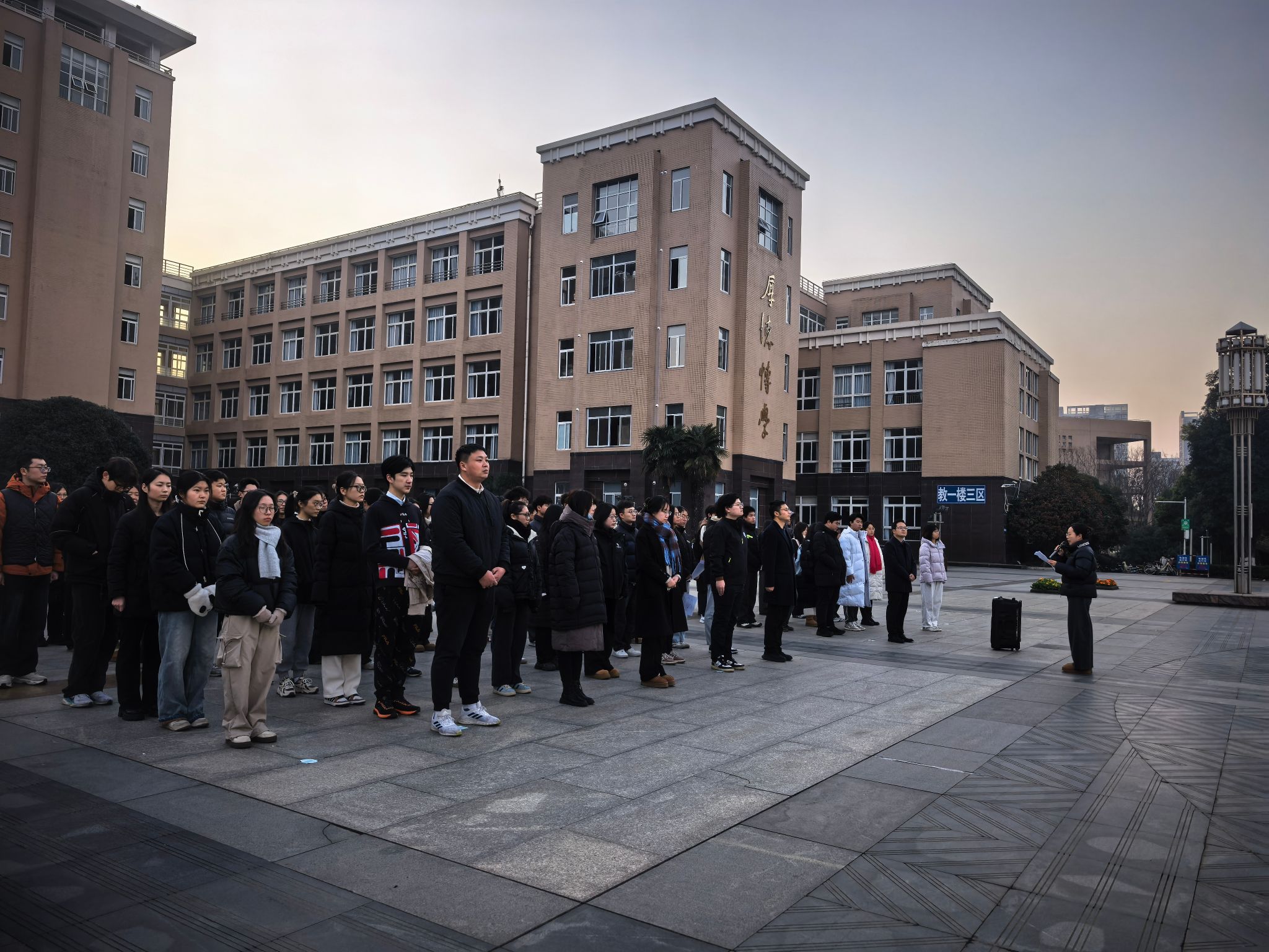 升旗仪式后,思政课教师代表董佳如老师以“赓续伟人精神,勇担青春使命”为主题发表演讲。今年正值毛泽东同志诞辰132周年,董老师深情回顾了毛泽东同志作为马克思主义中国化开创者的伟大贡献,并围绕“坚守信仰初心”“锤炼专业本领”“传承奋斗精神”三点,对学生提出殷切期望。她强调,青年学子要深入研读《实践论》《矛盾论》等经典著作,在实践中感悟真理力量,将个人学术追求融入国家发展大局,以青春之我书写马克思主义理论传承与创新的时代华章。