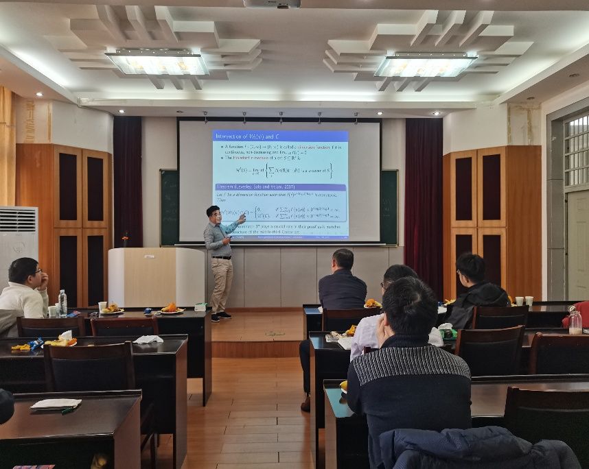 与会师生纷纷表示,本次报告会不仅展示了具体问题的解决思路,更深刻体会到由动力系统驱动分形几何研究这一核心思想的理论力量。报告有效拓宽了pg电子官网师生的学术视野,增强了跨学科创新意识,也进一步激发了大家对该领域的研究兴趣。院长丁义明教授评价道:“本次学术报告集中展现了数论、动力系统与分形几何交叉碰撞的深刻魅力,希望我们从中汲取灵感,保持探索热情,在各自研究领域中不断突破与创新。