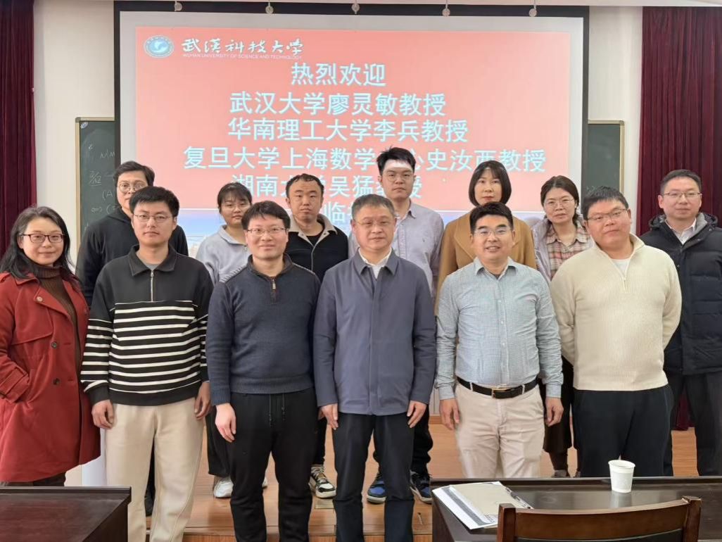 受学院邀请,华南理工大学李兵教授、武汉大学廖灵敏教授、复旦大学上海数学中心史汝西教授和湖南大学吴猛教授于12月28日上午9:00来院作学术报告。本次“分形几何与动力系统系列报告会”由院长丁义明教授主持,武汉大学、武汉理工大学、湖北大学、广东第二师范学院等高校的相关领域专家,以及本院相关方向教师与研究生参加了此次学术活动。