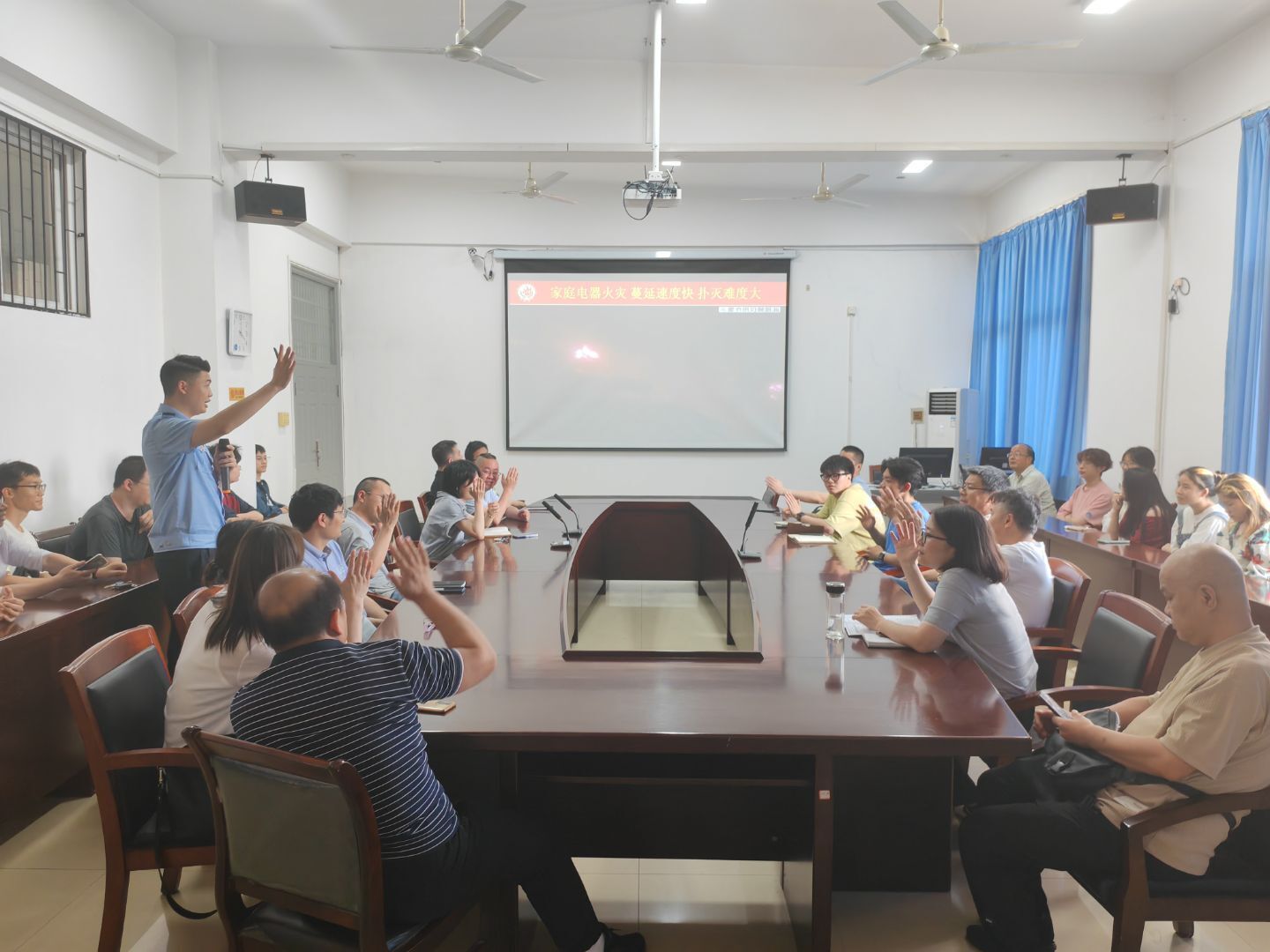 朱鹏远用活生生的火灾案例,向师生们展示了火灾的无情。“火灾究竟是天灾还是人祸?很多时候是人祸,因此,我们要增强消防意识,消除可能引发火灾的隐患。”他表示,很多小细节都可能导致火灾的发生,我们的实验室、工作室、宿舍等要做到“人走断电”,最后一名离开的人要检查一下室内的实验设备、水电等情况,确保安全;要购买新国标的插线板,使用3-5年要更换一次,用至10年必须更换,平时要及时清理插线板上残留的灰尘毛发等。