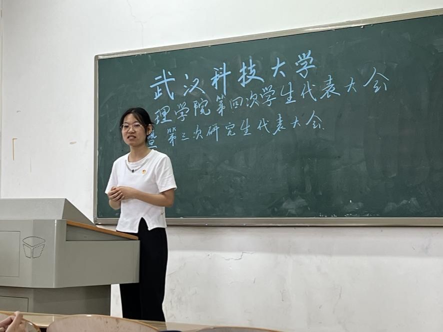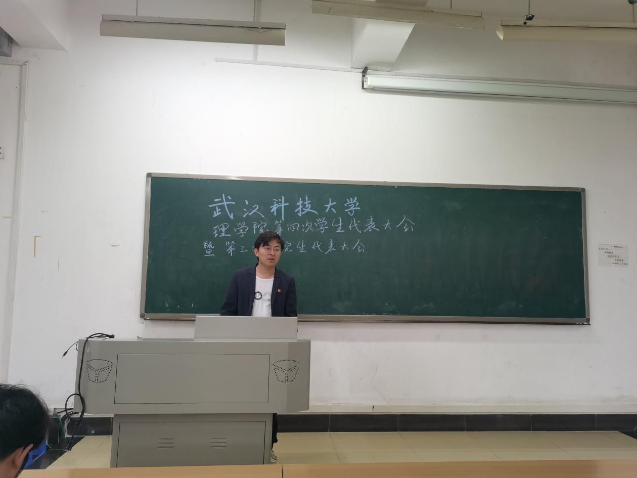研究生代表梁彬做《pg电子官方网站理学院第三次研究生代表大会提案工作报告》,提案主要反映了pg电子官网研究生自习室座位依然短缺问题,并给出了相应的反馈建议。