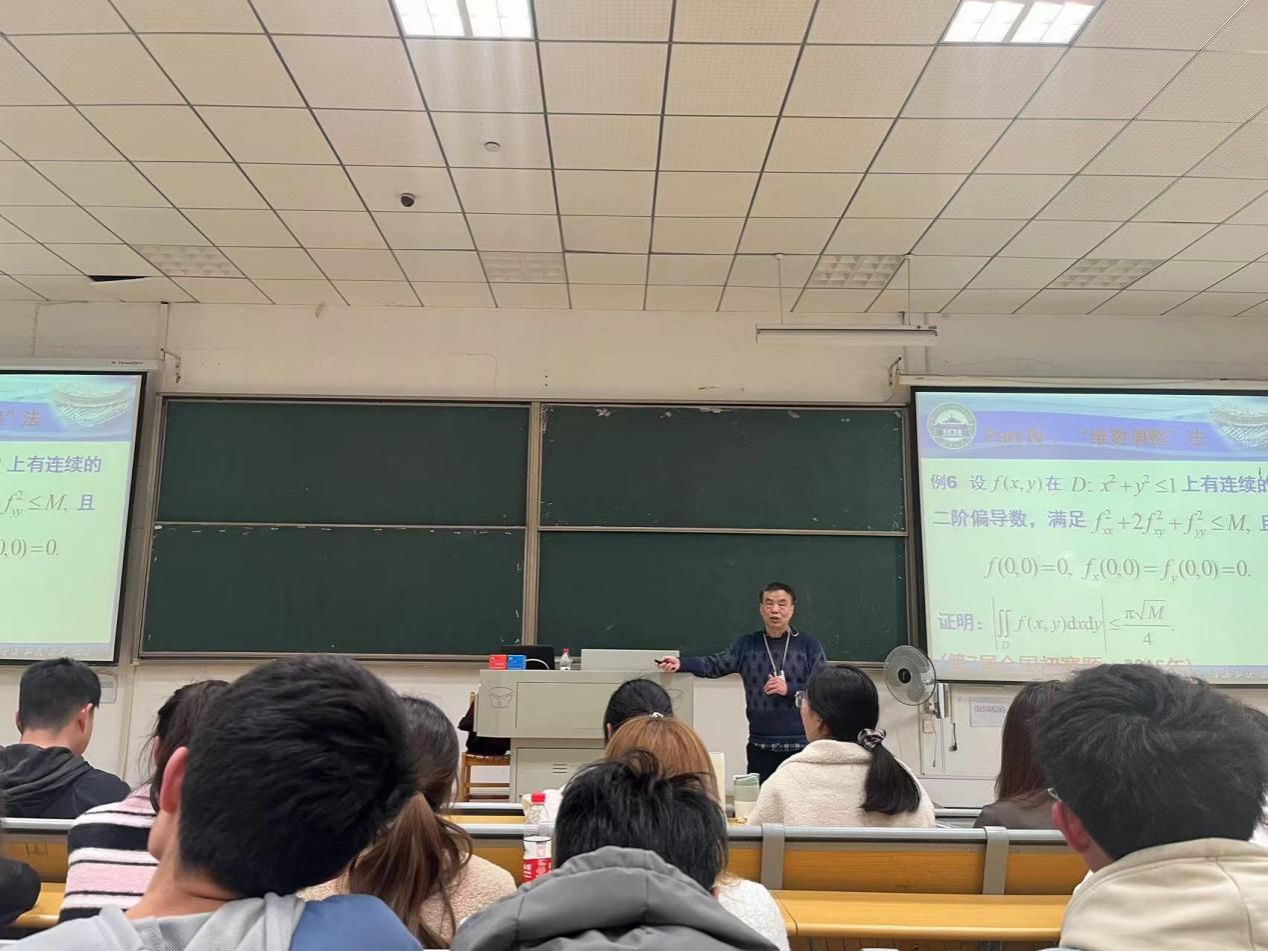 “运用逆向思维法,将复杂的问题简单化,有时才是更简单的解决问题的方法。”樊启斌教授列举了多道全国数学竞赛题目,通过逆向使用格林公式,将二重积分变为曲面积分,大大提高了解题效率。“在做题时,我更倾向于运用一些解题技巧,”樊启斌教授表示,“即使思路上复杂一些,但解题时会简单很多。”