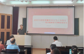 丁义明院长做师德师风建设专题报告。他明确了导师立德树人的具体职责范畴,涵盖思想政治教育、学业发展指导、专业实践能力培养、社会责任感塑造及人文关怀传递等方面。他指出,研究生导师作为研究生培养的核心力量,其教育理念、学术水平和指导能力直接关系到学院研究生的培养质量和未来发展。