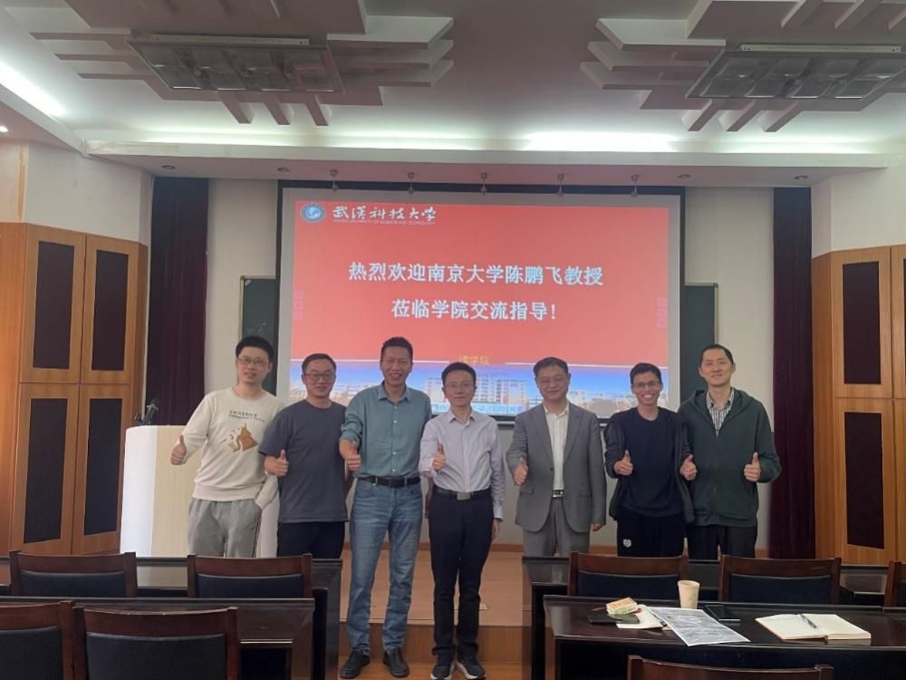 报告结束后,陈鹏飞教授应邀参观指导理学院应用物理系相关实验室,并和理学院应用物理系部分导师在应用物理系会议室就学科的发展进行了会谈,与李汉林教授在人工智能在粒子物理和天文研究中的应用展开了深入的交流探讨。