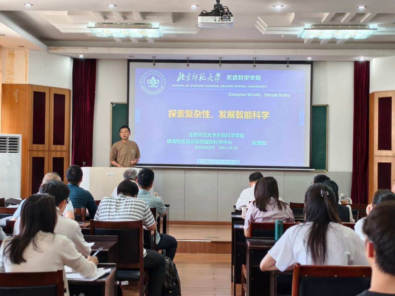 (通讯员苏青青)4月18日,北京师范大学狄增如教授受理学院邀请在22515报告厅作学术报告,题目为“探索复杂性,发展智能科学”。本次报告会由理学院院长丁义明教授主持,理学院部分教师及学生代表听取了本次报告。